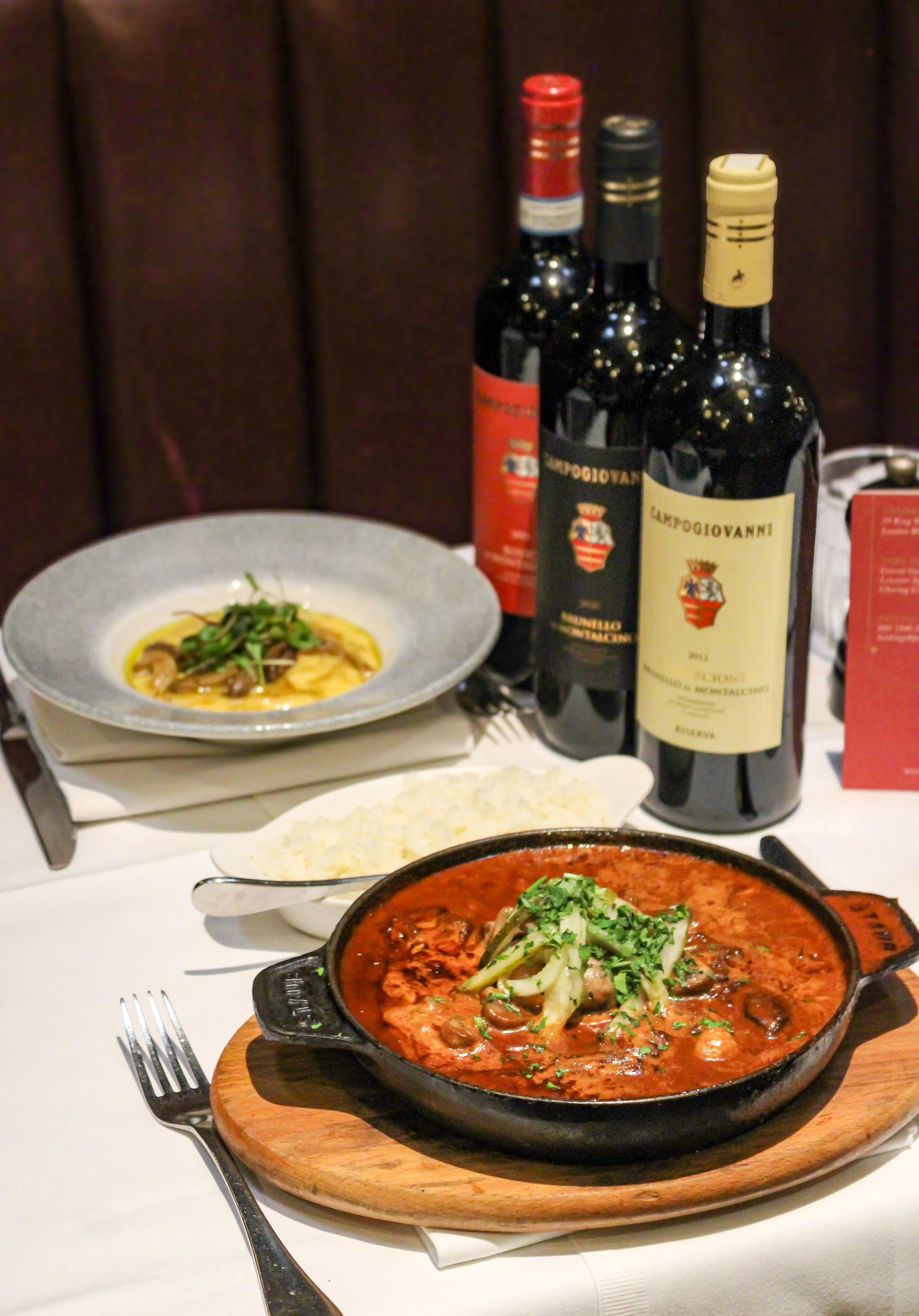 To complement these exceptional wines, our chefs present two new seasonal dishes: a creamy truffle and mushroom polenta, and a rich venison stroganoff served with jasmine rice, each designed to pair beautifully with Tuscany’s most iconic wines.